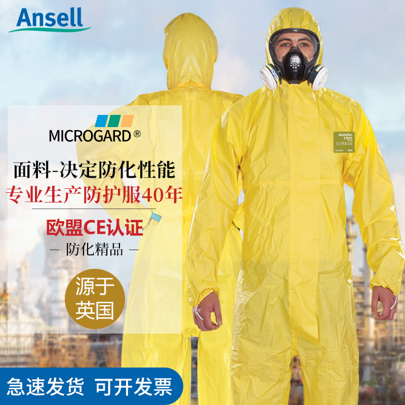 安思爾2300防酸堿化工防化服農(nóng)藥耐酸堿實驗防護(hù)服連體全身防毒噴漆工作服
